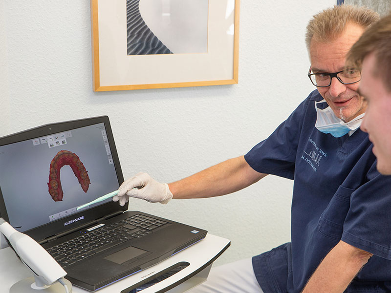 Unsere klimatisierte, barrierefreie Praxis verfügt über moderne Ausstattung wie digitales Röntgen, CAD/CAM-Technik, Intraoralscanner und ein praxiseigenes Dentallabor. Damit ermöglichen wir präzise, schonende und effiziente Behandlungen sowie die Anfertigung von hochwertigem Zahnersatz direkt vor Ort. Flexible Terminvereinbarungen, kurze Wartezeiten und eine umfassende Betreuung auch im Akutfall sind für uns selbstverständlich.
